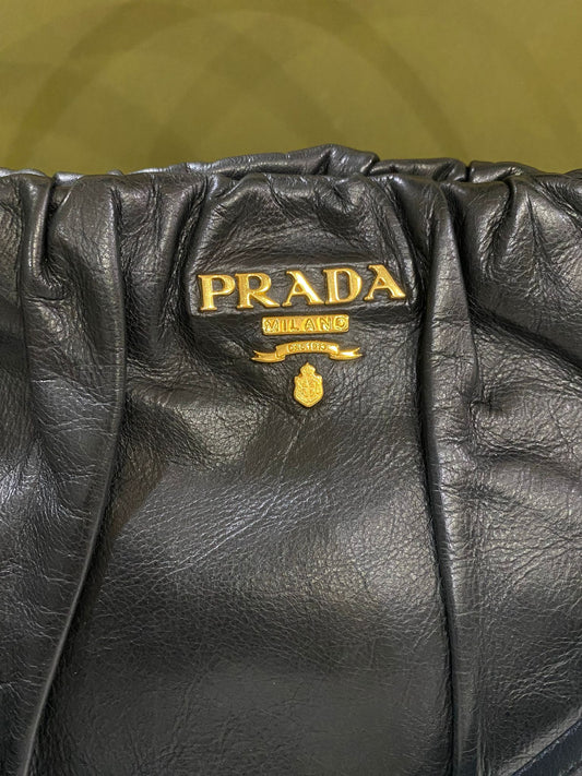Prada Dressy Black Leather Dumpling 2-in-1 Handbag Bag