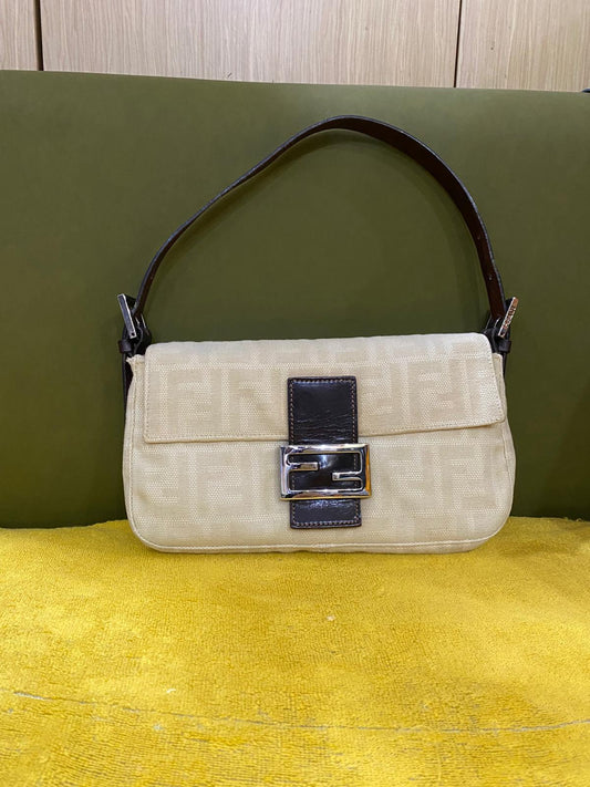 Fendi Vintage FF Monogra Zucca Baguette Bag in beige