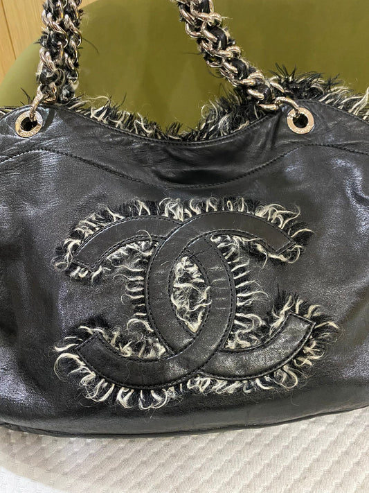Chanel bonbon CC logo lambskin tote with tweed chain