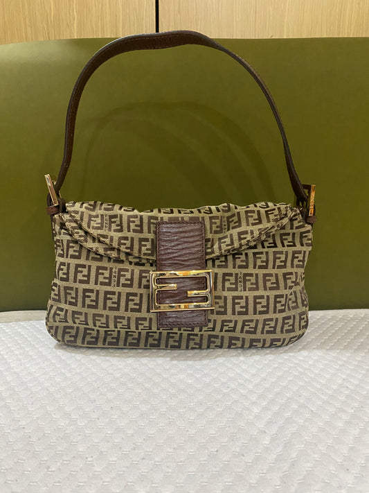 Fendi Vintage FF Monogra Zucca Baguette Bag in beige