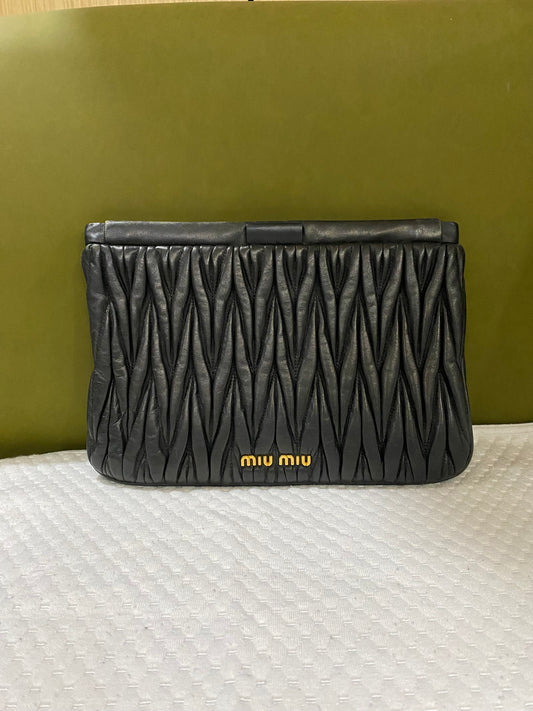 Miu Miu Leather Matelasse Clutch/ Pouch in Black