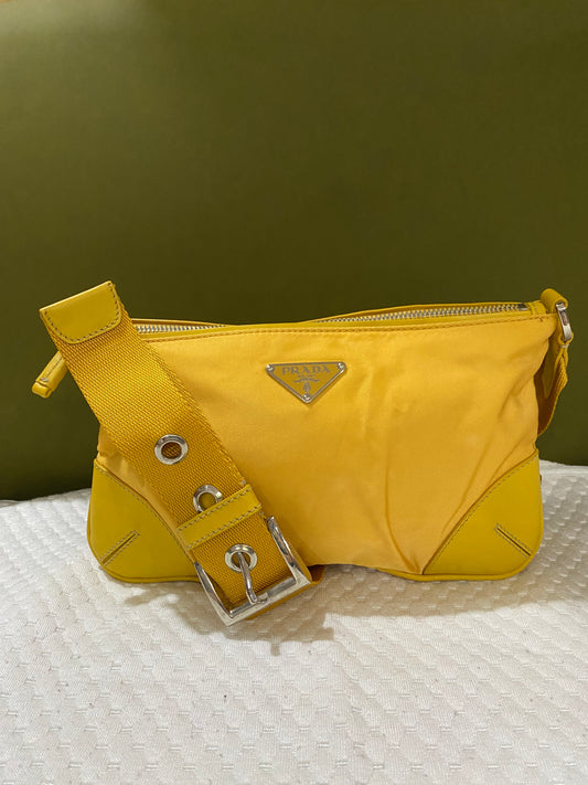 Prada Vintage Sport Yellow Tessuto Nylon Shoulder Bag