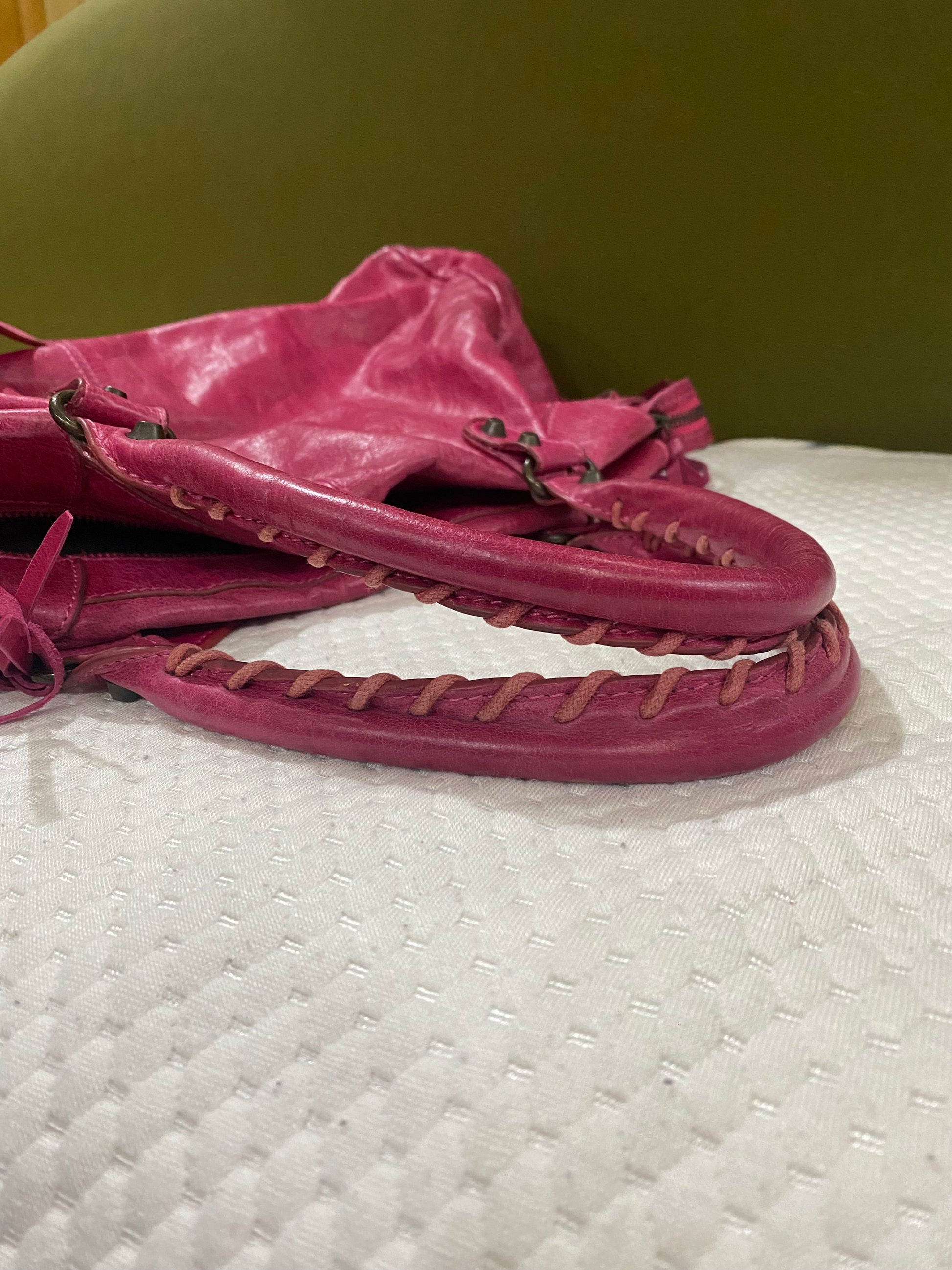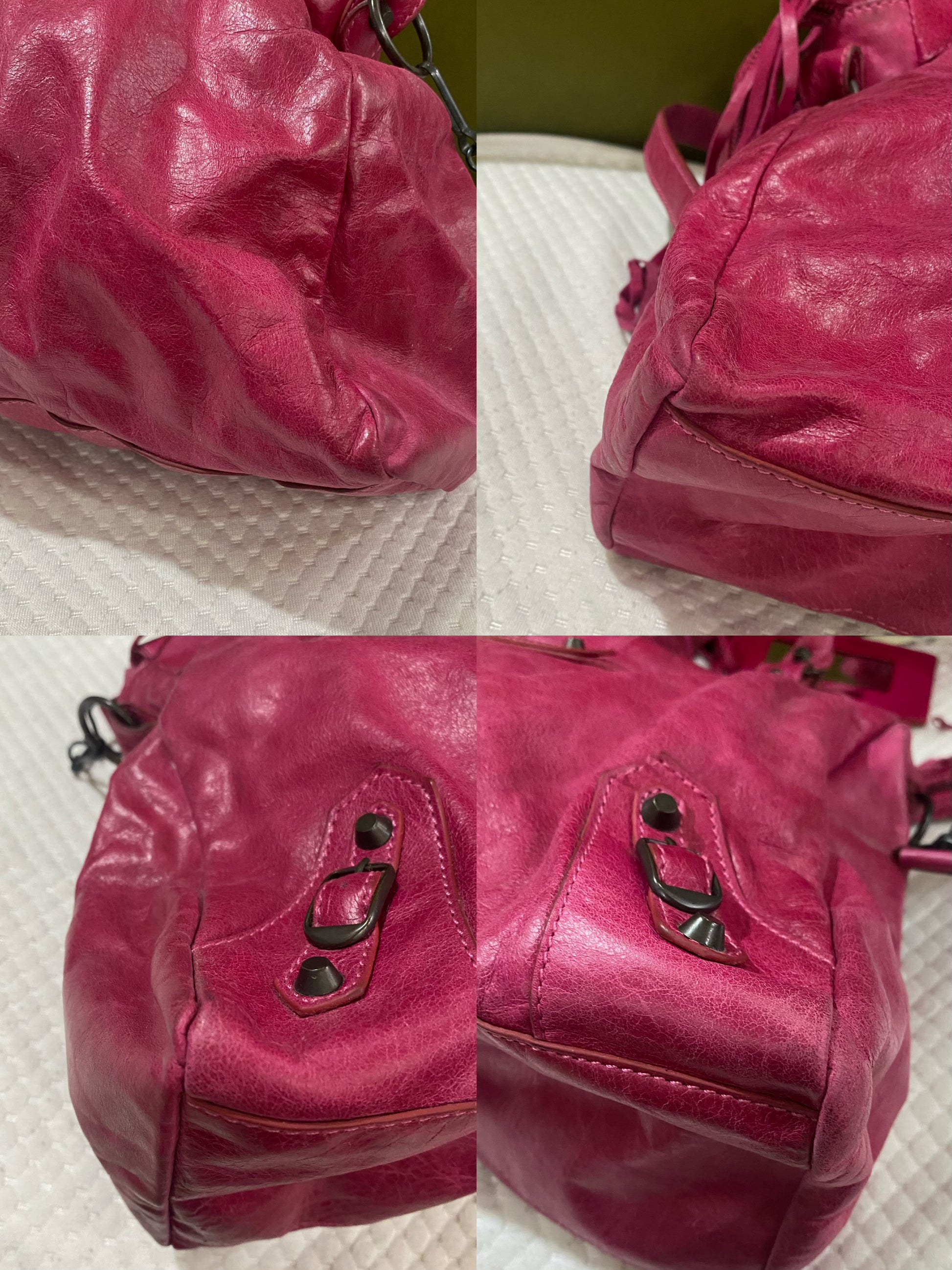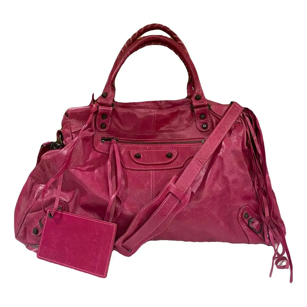 The Classic Motocross City features a leather body with tassel zipper pull details, rolled handles, antiqued brass studs, an exterior zip pocket, a top zip closure, and an interior zip pocket.
