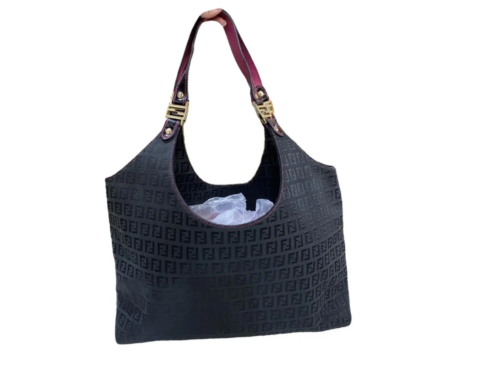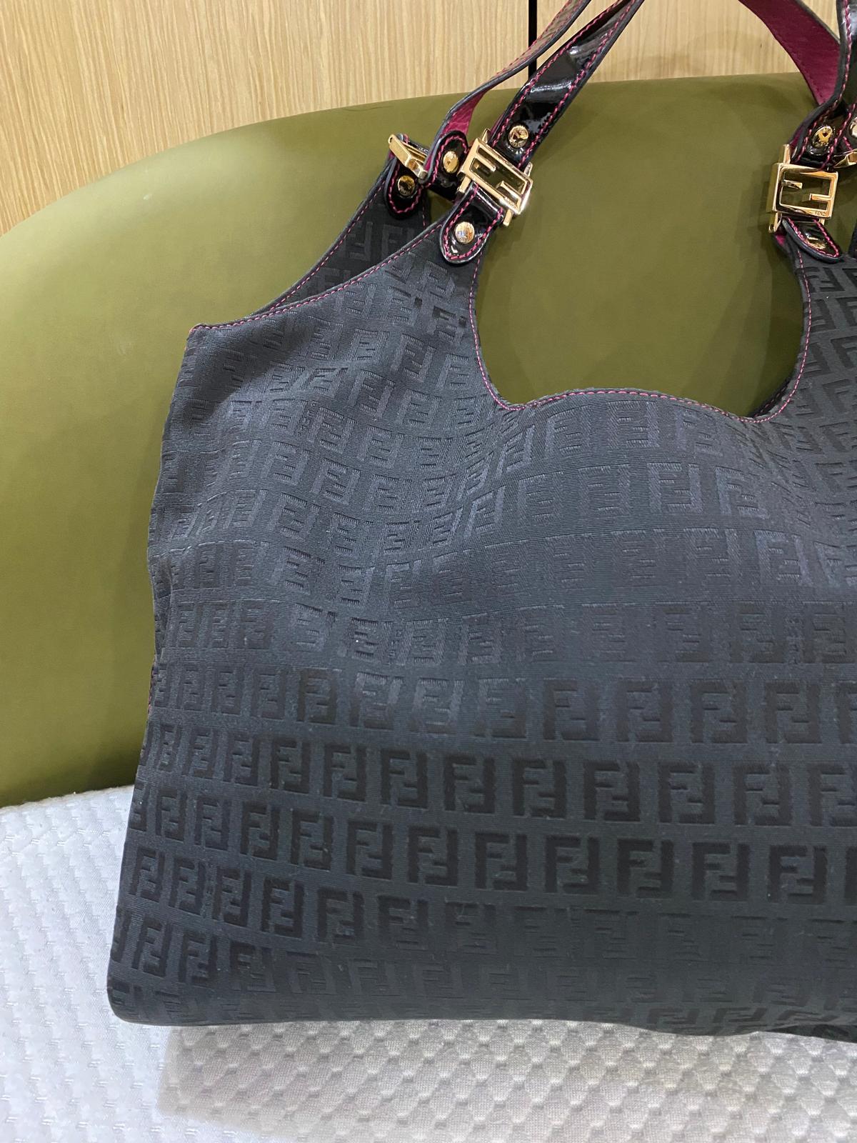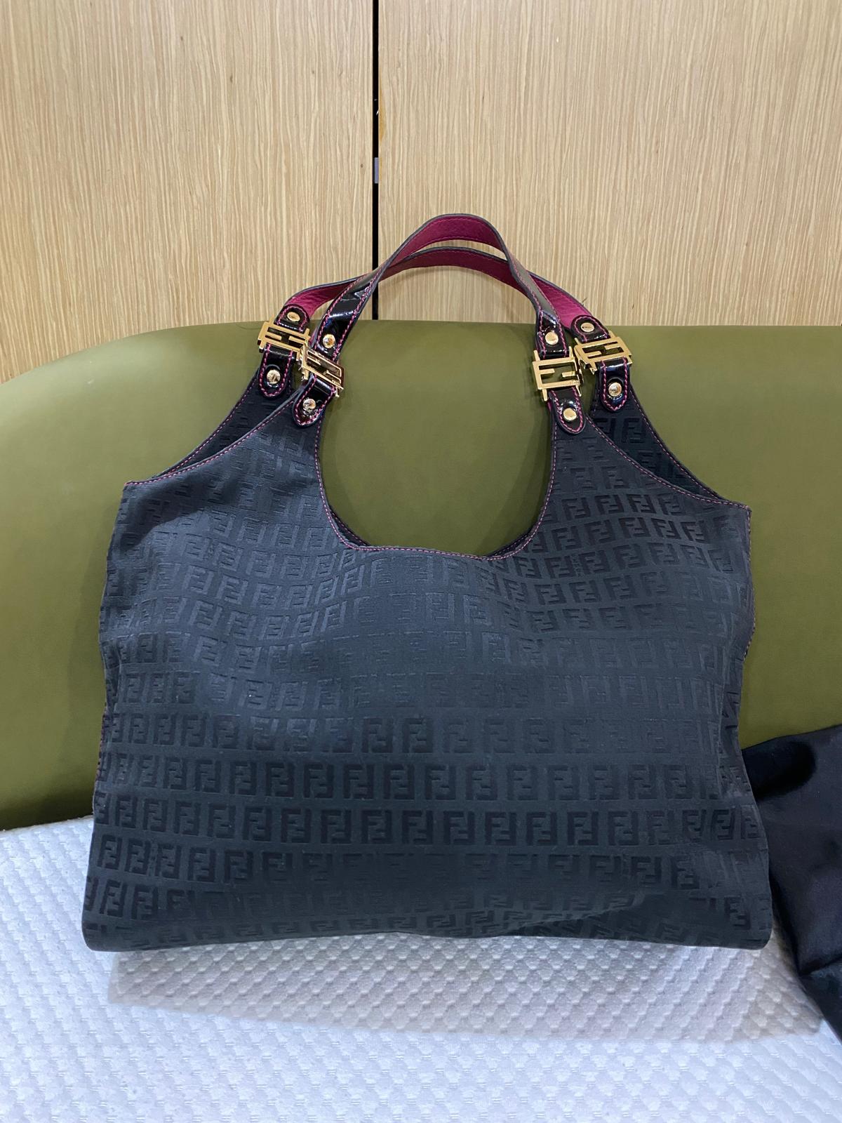Fendi Black/Magenta Zucchino Canvas Grand Shopper Tote
