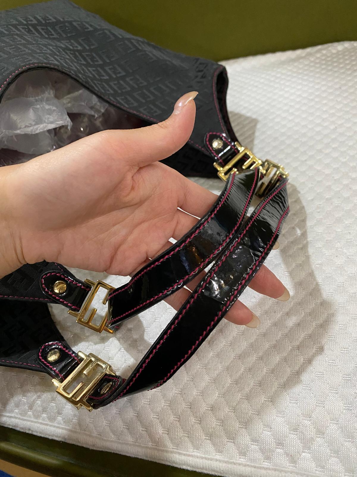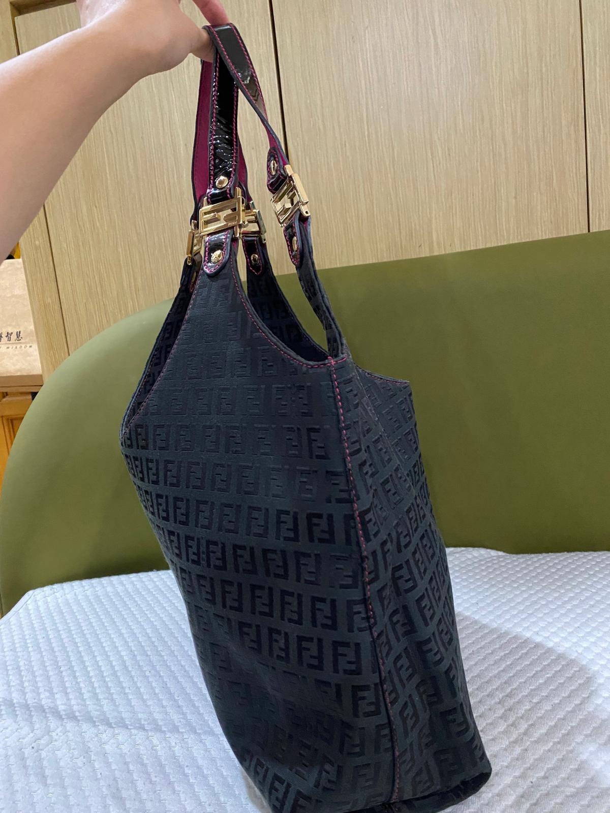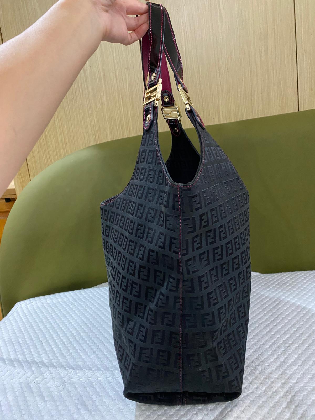 Fendi Black/Magenta Zucchino Canvas Grand Shopper Tote