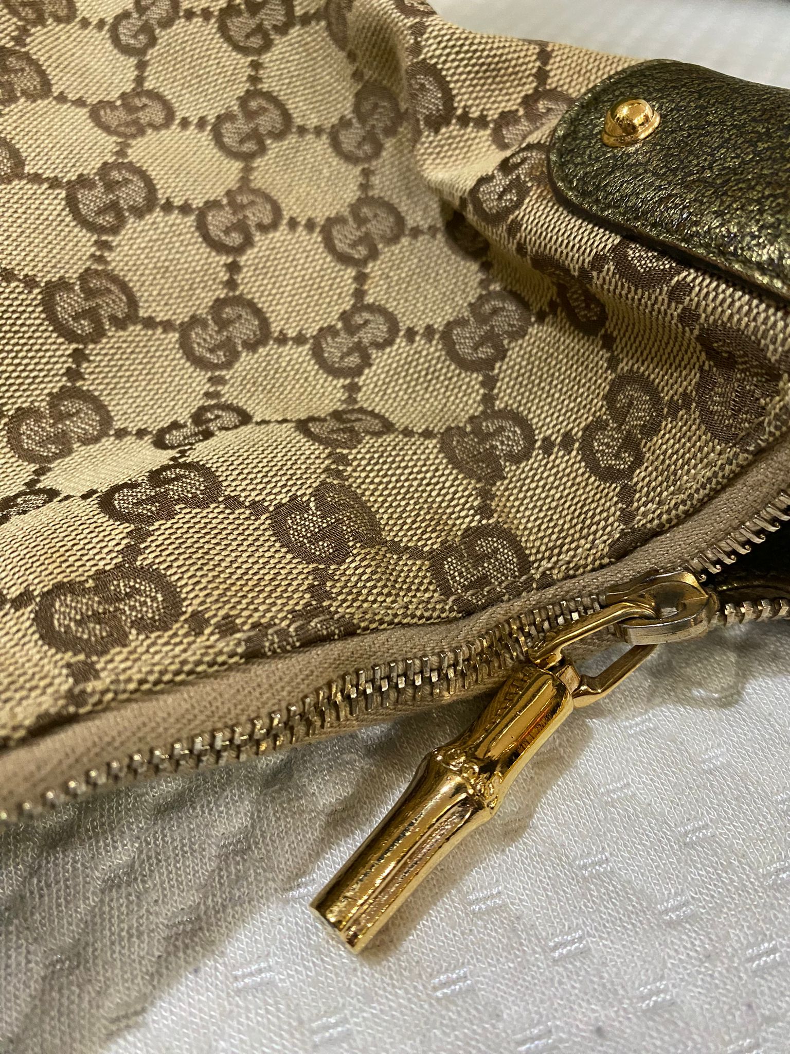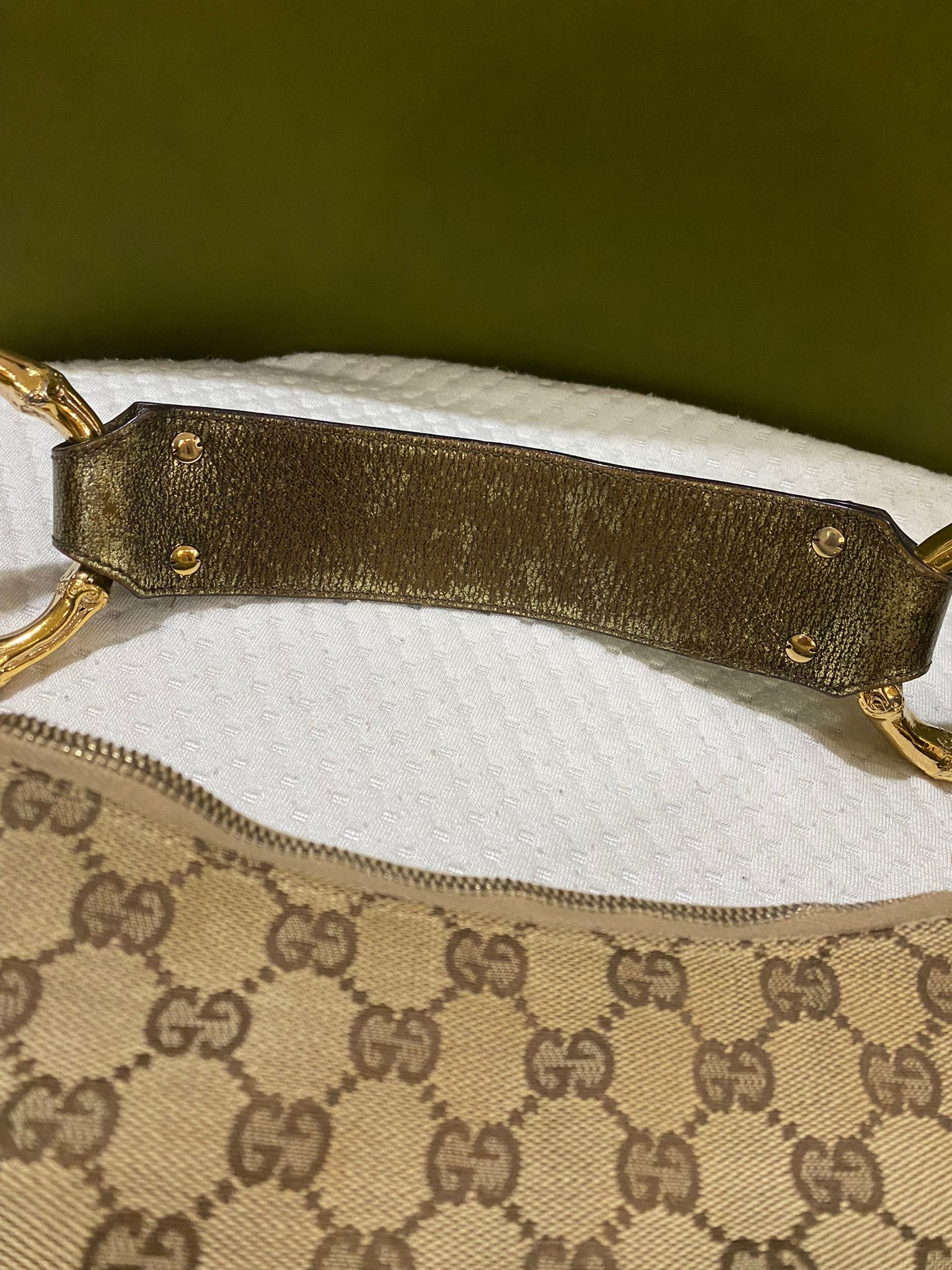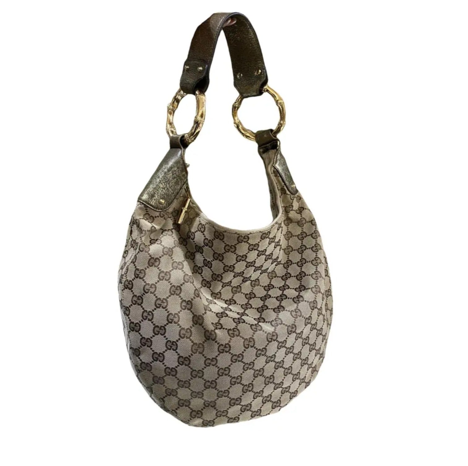 Gucci Amalfi Monogram Bamboo Hobo Shoulder Bag