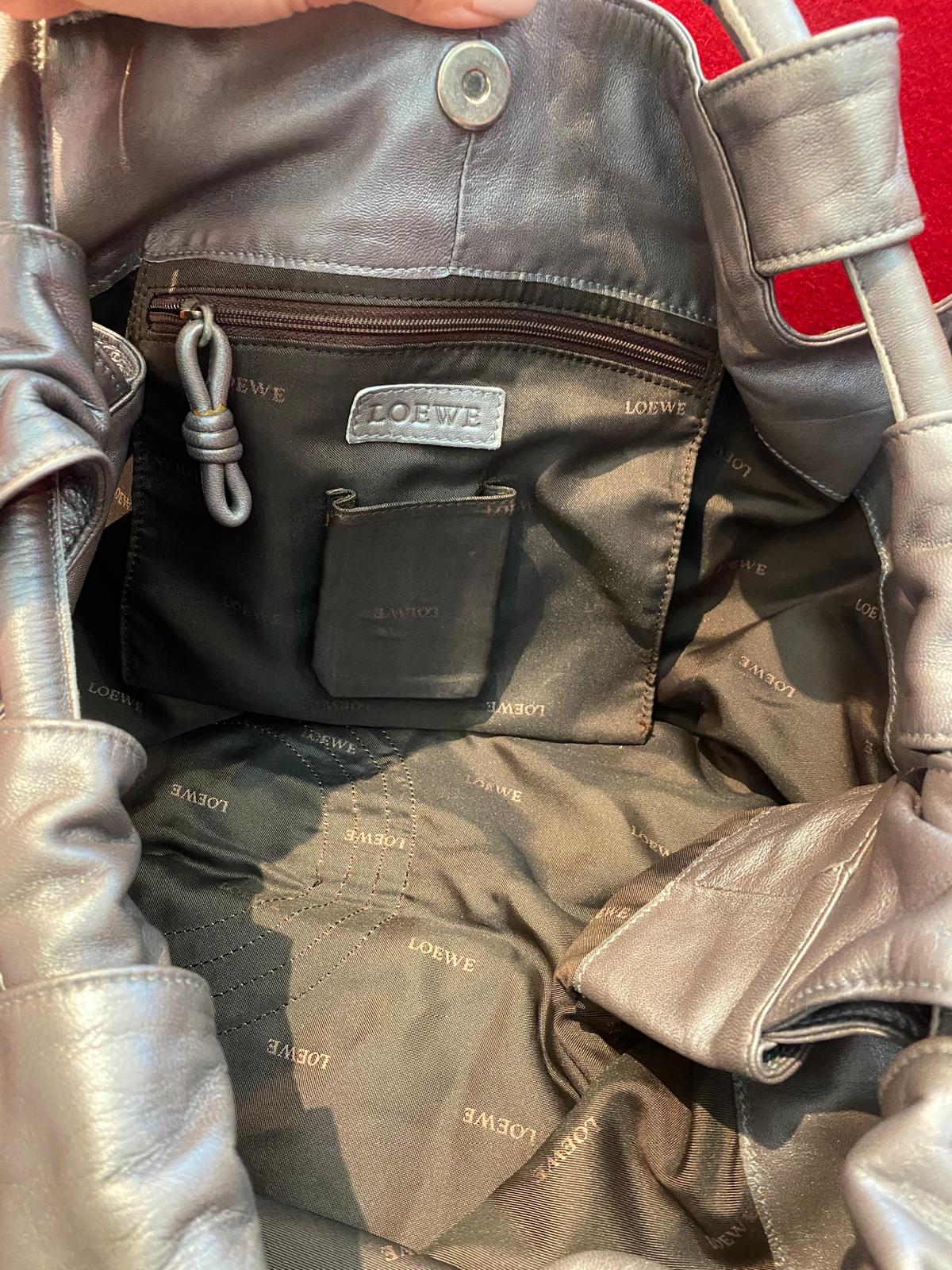 Loewe Metallic Silver Leather Nappa Aire Hobo Handbag